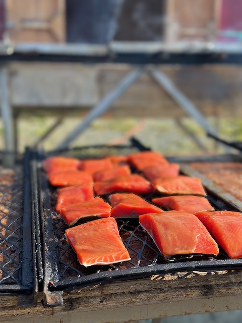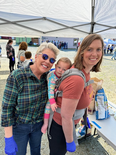 Saturday, Steve, Dacotah and I volunteered to help serve at the Fisherman’s BBQ. There was a bicycle race from Haines Junction, Canada to Haines, AK. 148 miles through a mountain pass. Some people did it in teams, but many did it all alone! The finish line was right in front of our house, so we heard people cheering and ringing cow bells. The first finisher came in around 2pm, there were still people coming in at 10pm. The Fisherman’s BBQ is held at the fair grounds and the bikers get a ticket along with their registration. Everyone eats for FREE but there is a suggested donation of $10. The menu was chips, grilled salmon, deep fried halibut, black bean and corn salad, rolls and brownies. Pretty good for $!0!!! It was fun and we met people from all over. One couple I talked to sold their home 4 yrs ago and bought a boat. They have been living on it and traveling the world ever since.