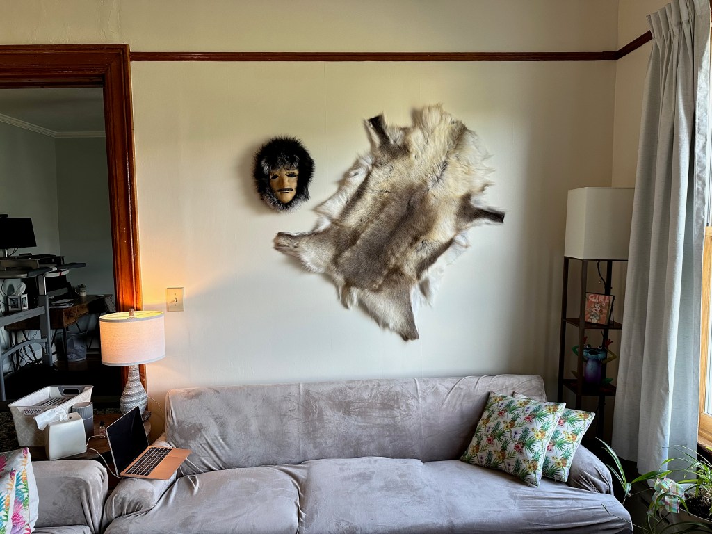 The lilacs and the wild iris are in bloom! We worked all week and on Weds. I flew to Juneau for work. It was a beautiful morning for a flight! I got some beautiful pictures. I trained at Juneau SEARHC and learned how to prick someone’s finger and get a lipid panel, blood glucose and hemoglobin A1C! We had several WISEWOMAN patients, so I got to see how to do motivational interviewing and health educating. My boss was there also, and she had a car so we could go out for lunch and dinner. Weds. for lunch we all (the team from Juneau) went to a really good Mexican restaurant near Costco and then for dinner Pam and I went downtown. Dacotah wanted me to get some rhubarb gin and tonics that are seasonal, from a local distillery. Pam and I had a fancy cocktail and then we were looking for somewhere to eat and walked past a really nice gift shop. We found some BEAUTIFUL caribou pelts and I bought one!!! I gave it to Steve for an anniversary present. We tried a few different restaurants but ended up at the Island Pub on Douglas Island. Pam and split a steak sandwich with a lemon orzo salad and added a Caesar salad also-YUM!!! Thurs., we went to a local sandwich shop for lunch that was HOPPING!!! Thurs. night my boss and I got a pedicure. Steve said, “I’ve NEVER gotten a pedicure with my boss”) LOL! Thurs. night we found a Chinese restaurant that was good. I flew back on Friday after work and there were only 2 other passengers. One got to sit next to the pilot and when we were getting close to Haines, I noticed that he was flying the plane!!! Only in Alaska!