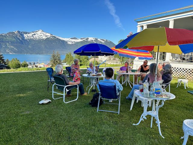 Monday night we were invited to “Cocktails on the Lawn”. We brought cream cheese with apricot-habanero jelly that we bought at the farmer’s market. It was delicious! We met more interesting people, and the weather couldn’t have been lovelier!