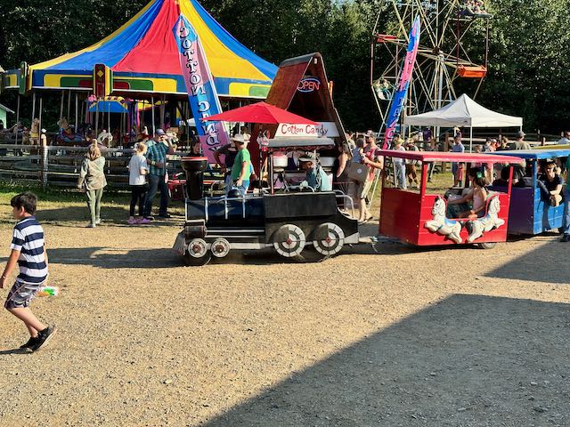 The fair started on Thurs., but the Russell’s had other plans, so we decided to skip the fair for the evening and go to cocktails on the lawn. Friday night we went to the fair after work. They had a “wearable art” contest. It was so AMAZING!!! I can’t wait until I can be in it next year! I would love ideas from my creative friends. I was thinking about a long skirt with Sitka Roses, a top with forget-me-nots, and putting real fireweed in a hat???